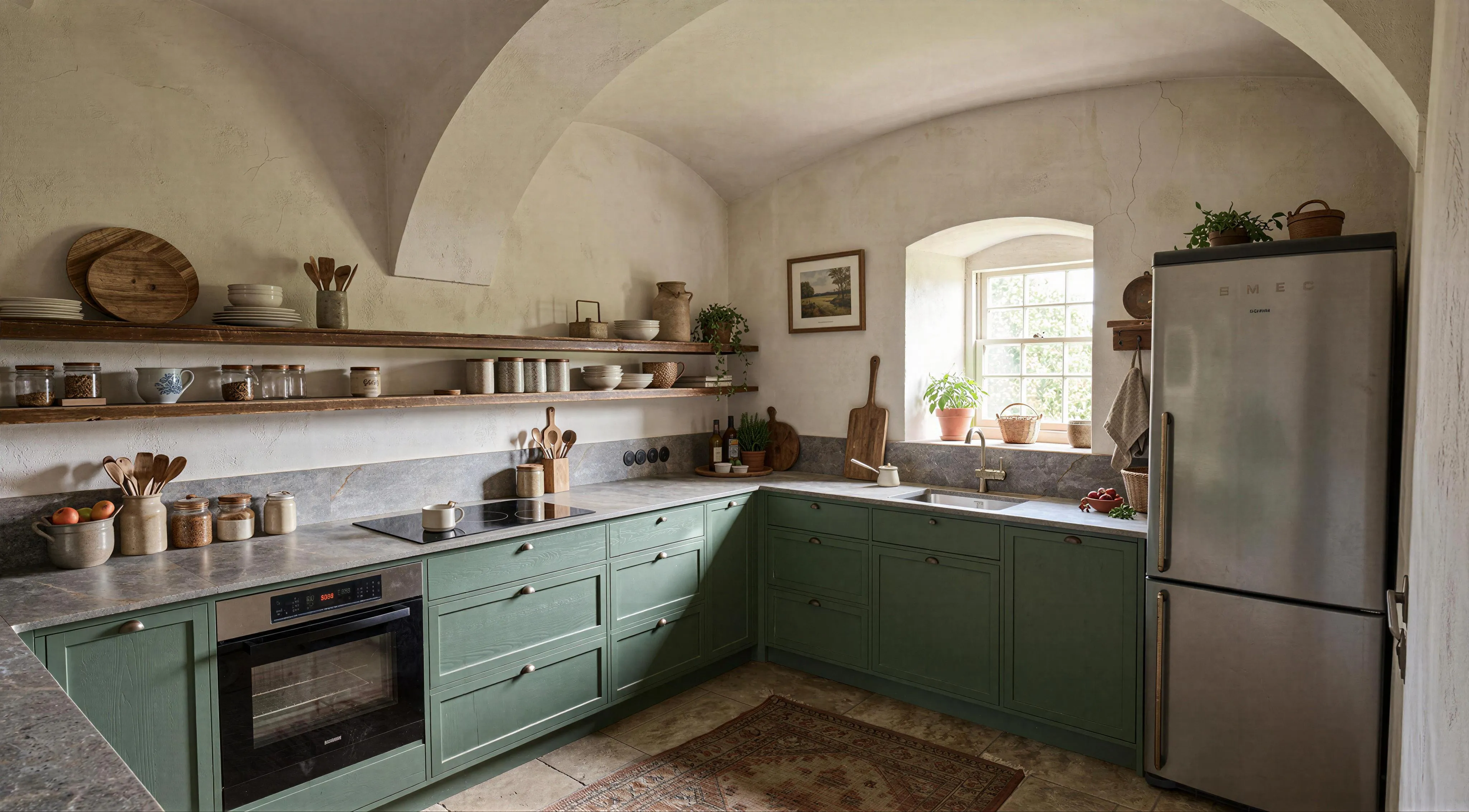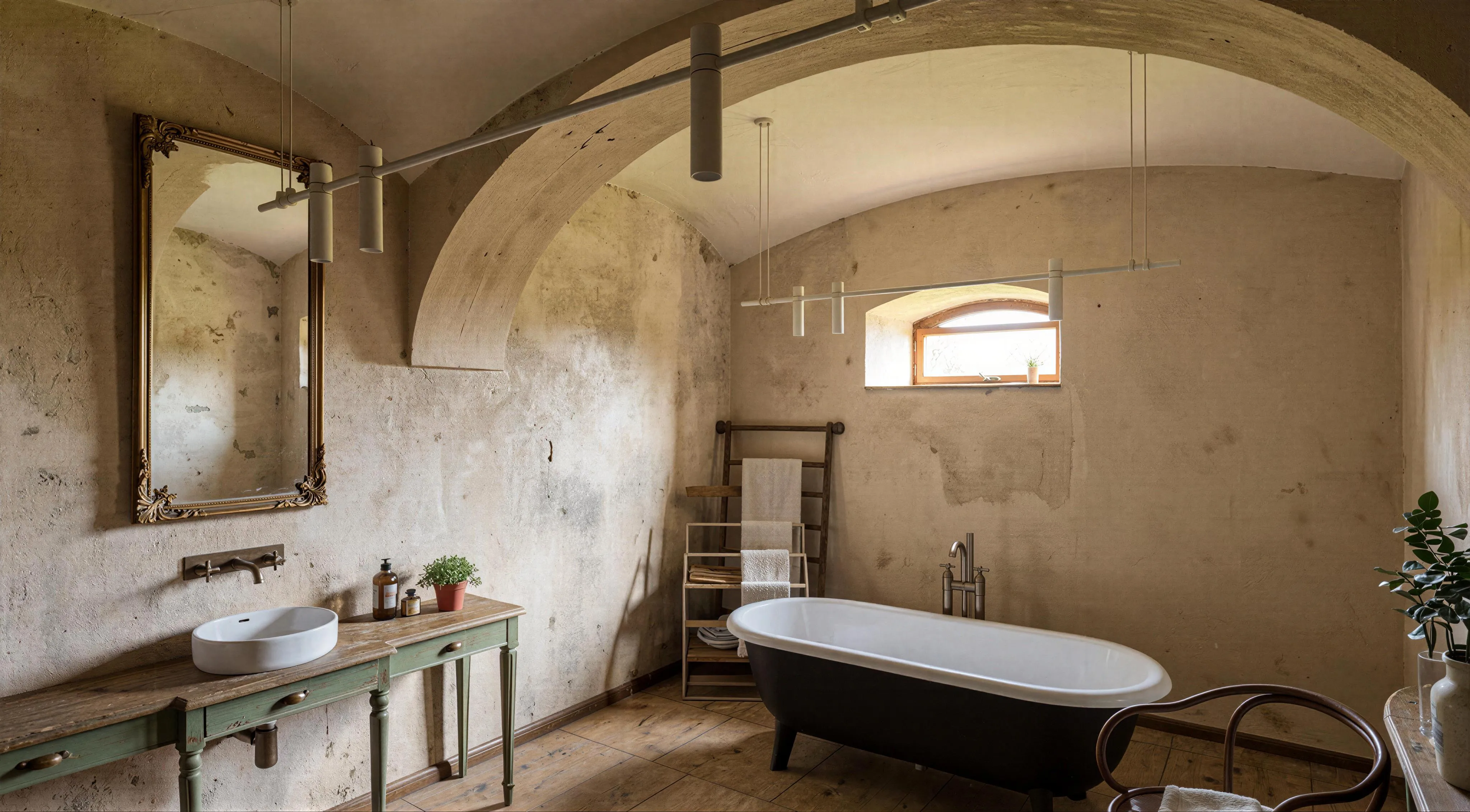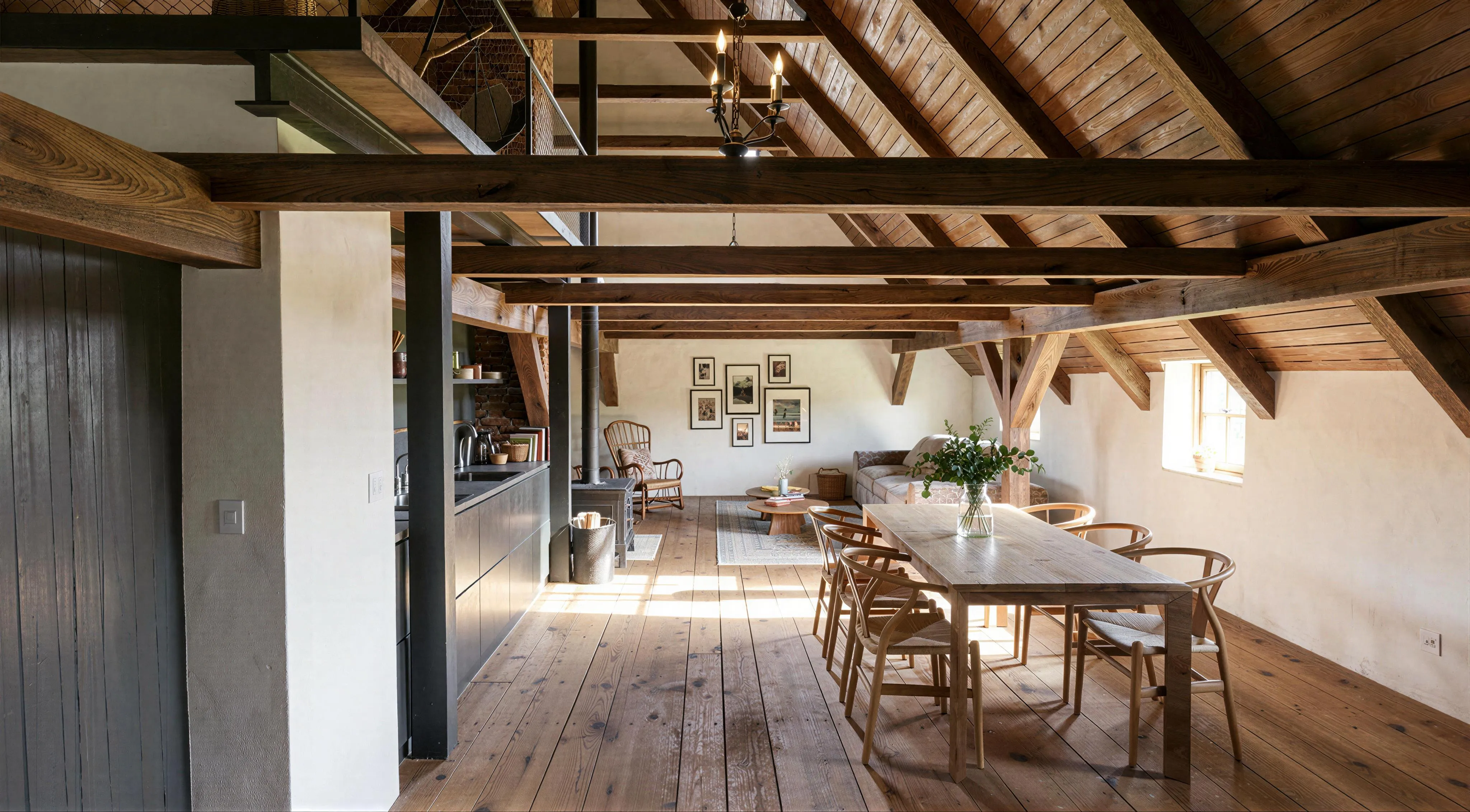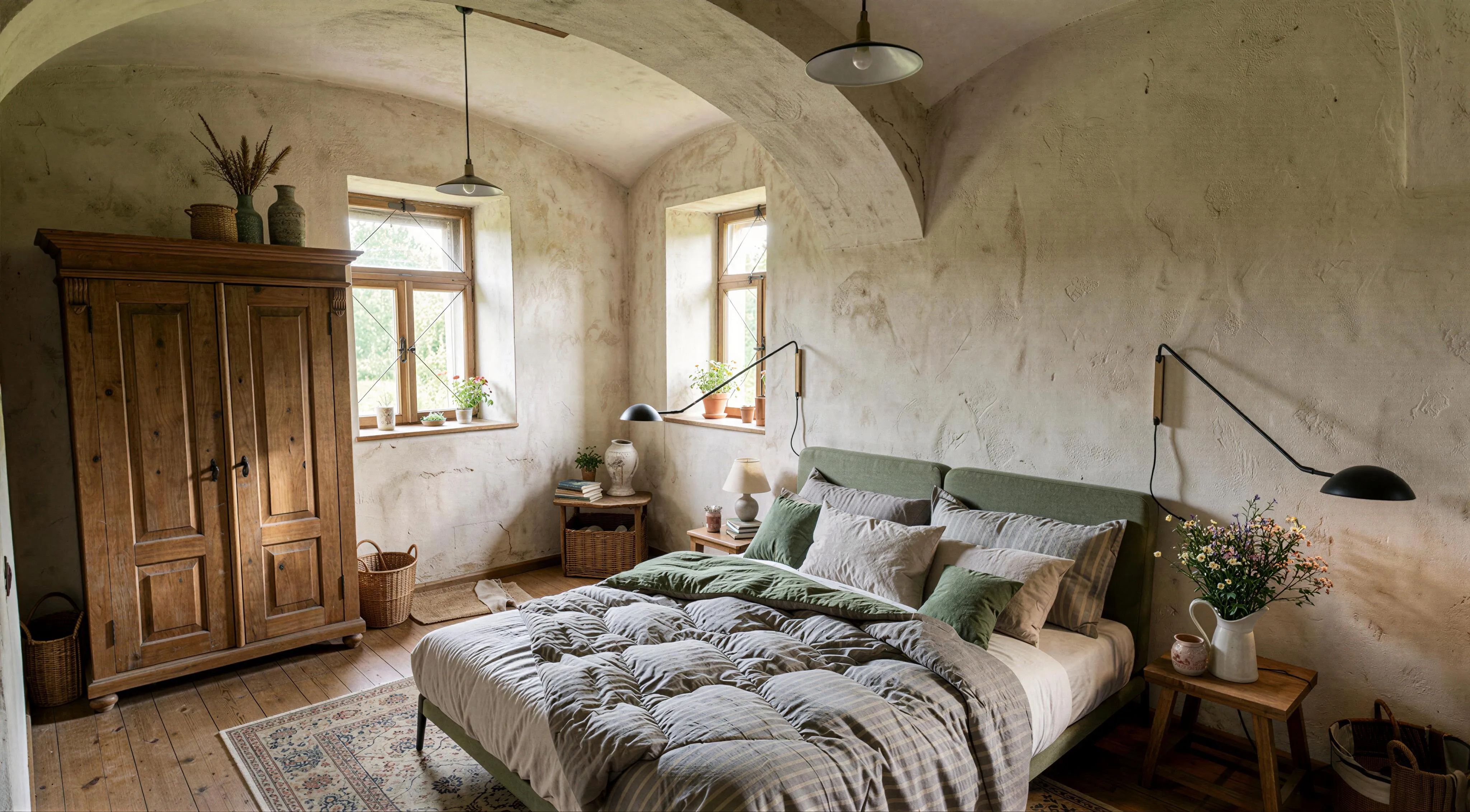moderní kusy doplňují historický nábytek, těžká dubová podlaha, renovace omítek